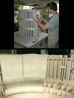 Vor der Trocknung wird der Ofen wieder in einzelne Kacheln auseinandergeschnitten. |